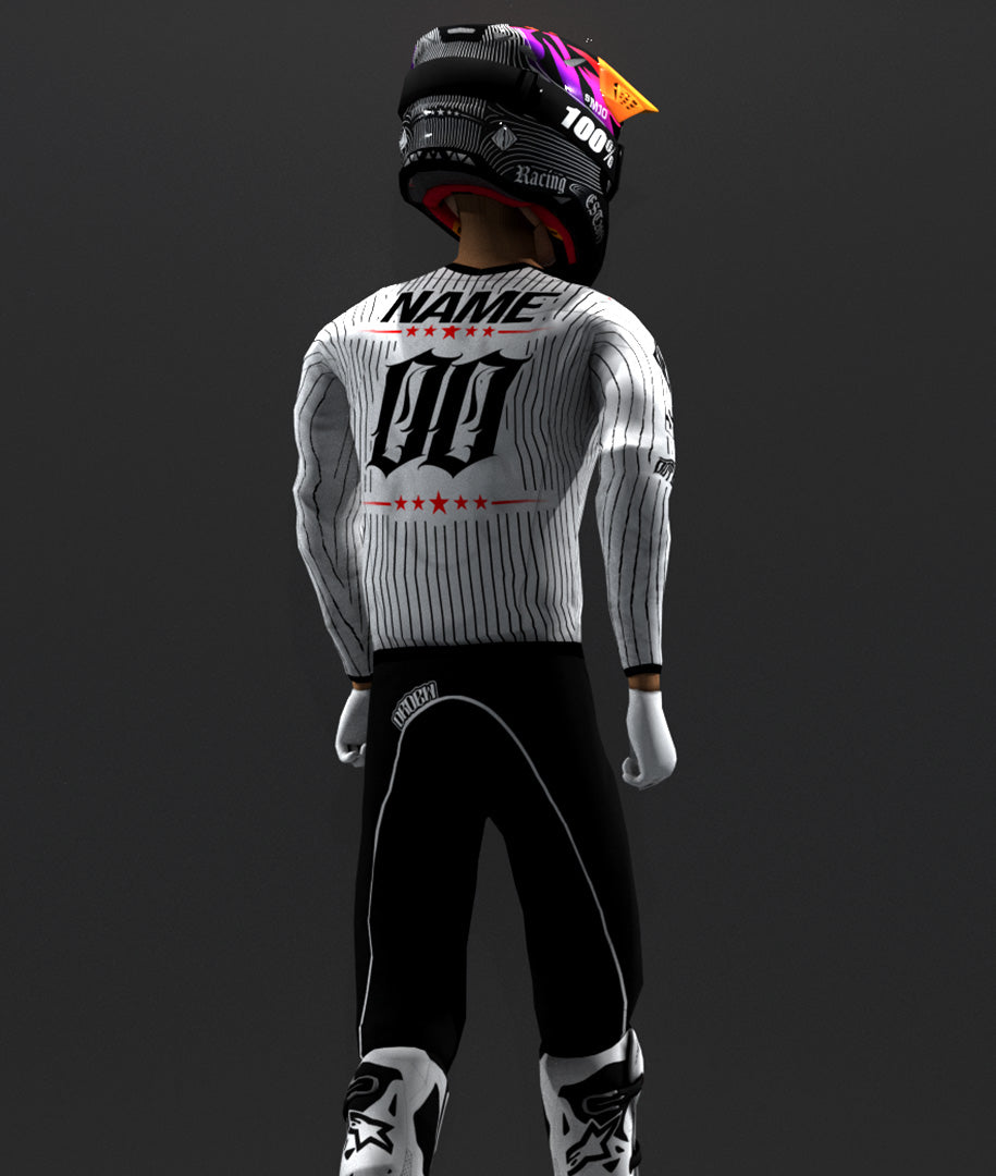 This will include one set of gear with your name and number on it and a chest protector option with your name and number on it for Mx Simulator.